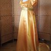 Regency style dress, made of satin with silver trimmings, The dress does not have a lining.Not transparent.